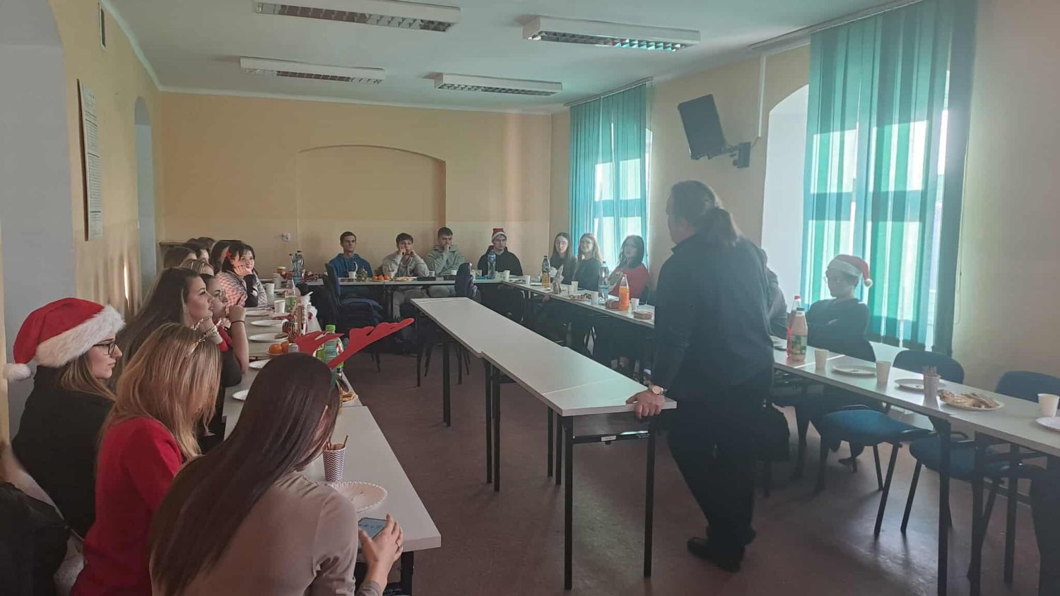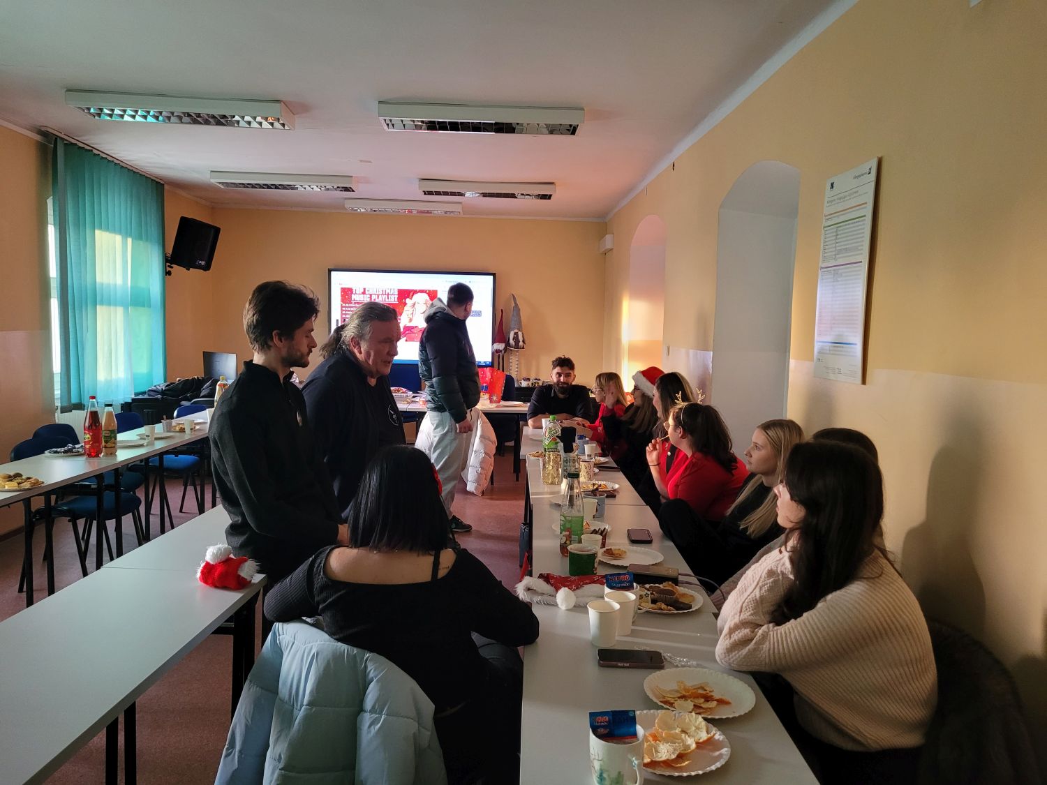 W dniu 16 grudnia 2025 r. odbyło się spotkanie wigilijno-integracyjne, na którym licznie zgromadzili się członkowie SKN „Cognitio Scientiae”, a także obecny byli Opiekun Koła dr hab. inż. Marek Z. Kulisz, prof. ucz. oraz Zarząd Koła. Wydarzenie stanowiło kolejną okazję do integracji oraz nawiązania rozmów pomiędzy studentami różnych roczników z kierunków bezpieczeństwo wewnętrzne i administracja. Podczas spotkania mgr Daria Hnytko, Julia Psiurska i lic. Tomasz Rabenda wręczyli prezenty studentom oraz Opiekunowi Koła, wprowadzając namiastkę dziecięcej, szczerej radości świątecznej. Serdeczna, przedświąteczna atmosfera niewątpliwie sprzyjała chwili odpoczynku od codziennych zajęć i obowiązków życia prywatnego, a także wzmocniła motywację do podejmowania kolejnych inicjatyw z ramienia SKN „Cognitio Scientiae” na gruncie badawczo-popularyzatorskim.