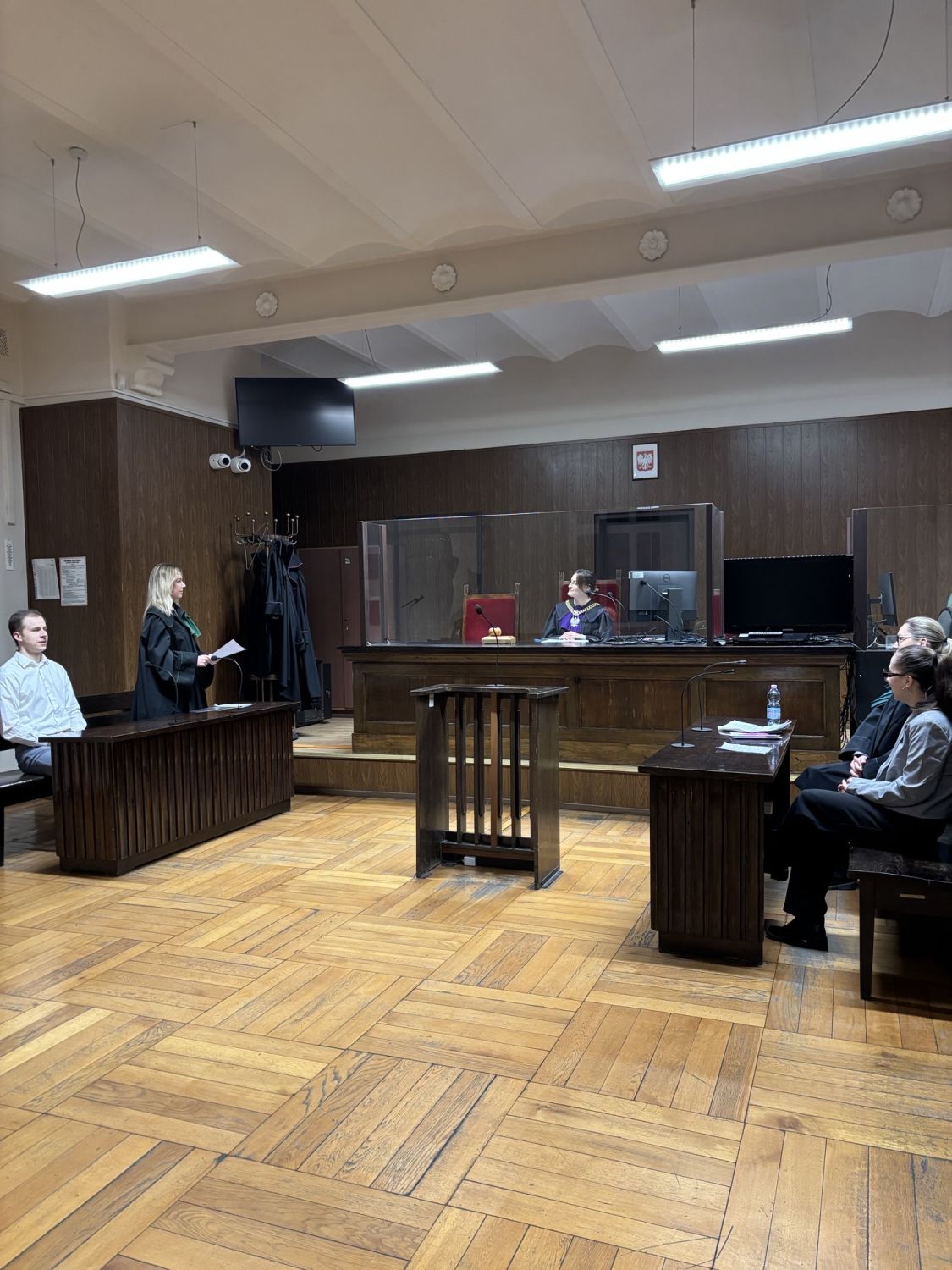 Symulacja rozprawy przebiegła sprawnie i zakończyła się pełnym powodzeniem, stanowiąc cenne doświadczenie edukacyjne oraz praktyczne uzupełnienie wiedzy teoretycznej zdobywanej podczas zajęć. Wizyta w sądzie była dla studentów wartościową okazją do bezpośredniego zetknięcia się z realiami pracy wymiaru sprawiedliwości.