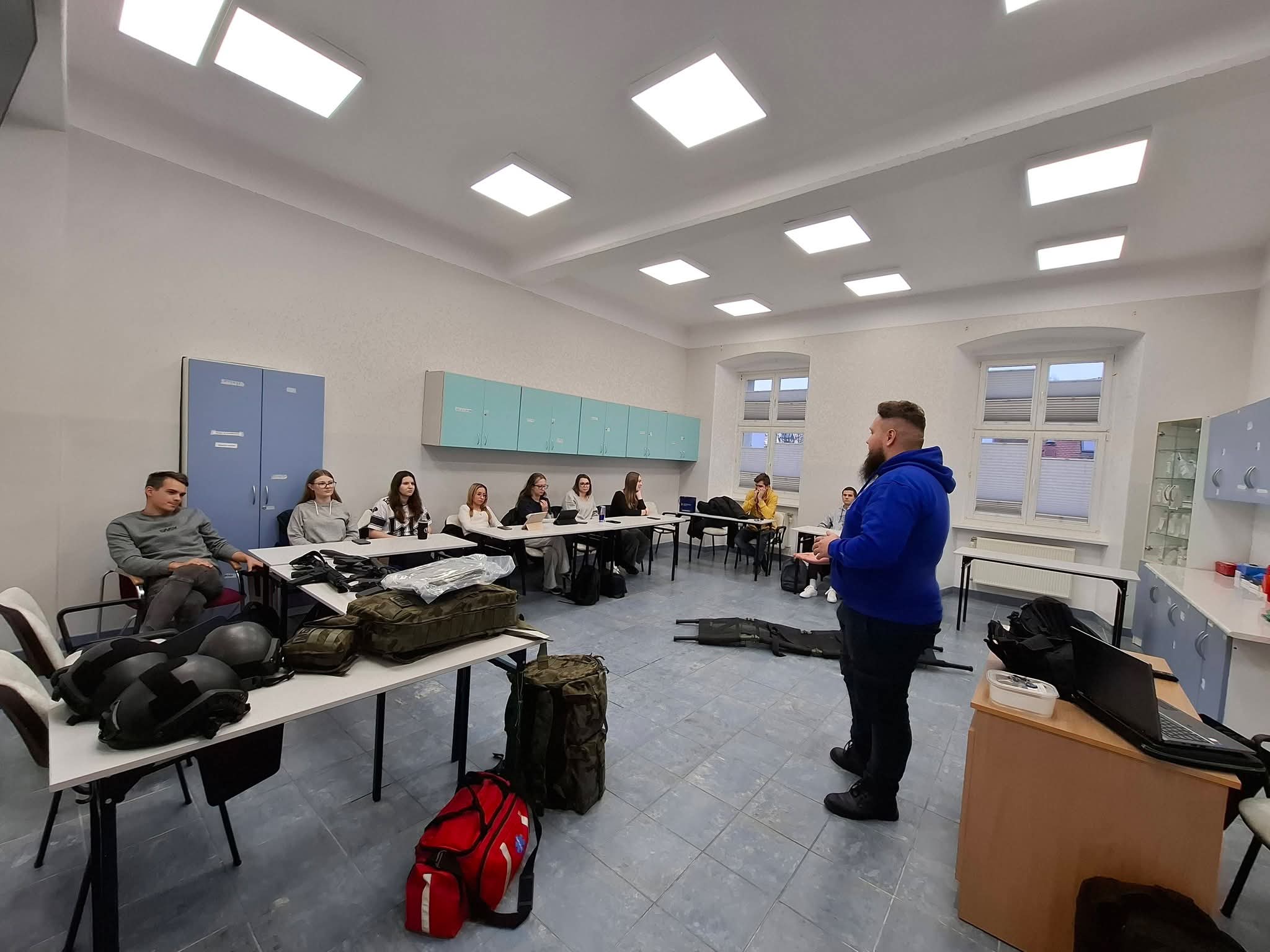 Członkowie naszego Koła wzięli udział w zajęciach praktycznych prowadzonych przez Pana mgra Aleksego Gałana - absolwenta Państwowej Akademii Nauk Stosowanych w Nysie i obecnego wykładowcę. Spotkanie było okazją do omówienia zagadnień związanych z działaniami w sytuacjach kryzysowych, zarówno z perspektywy obywatela, jak i osób pracujących w służbach. Poruszyliśmy kwestie procedur, możliwych scenariuszy działania oraz odpowiedzialności, jaka wiąże się z reagowaniem w takich sytuacjach.
