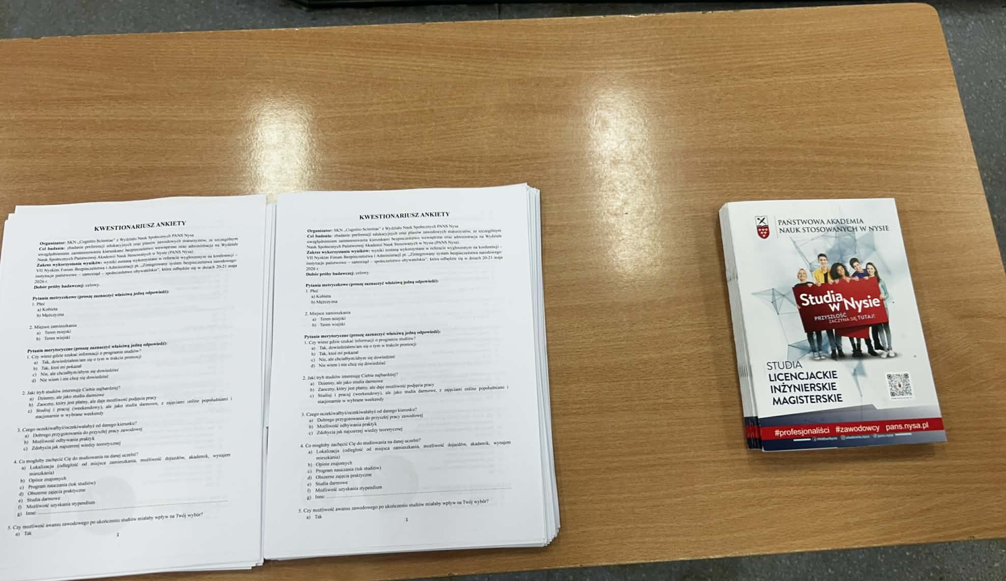Ostatnim etapem spotkania było przeprowadzenie badania ankietowego wśród uczniów klas maturalnych. Zebrane kwestionariusze dotyczyły preferencji edukacyjnych oraz planów zawodowych maturzystów, ze szczególnym uwzględnieniem zainteresowania studiami na kierunkach bezpieczeństwo wewnętrzne oraz administracja na WNS PANS w Nysie.