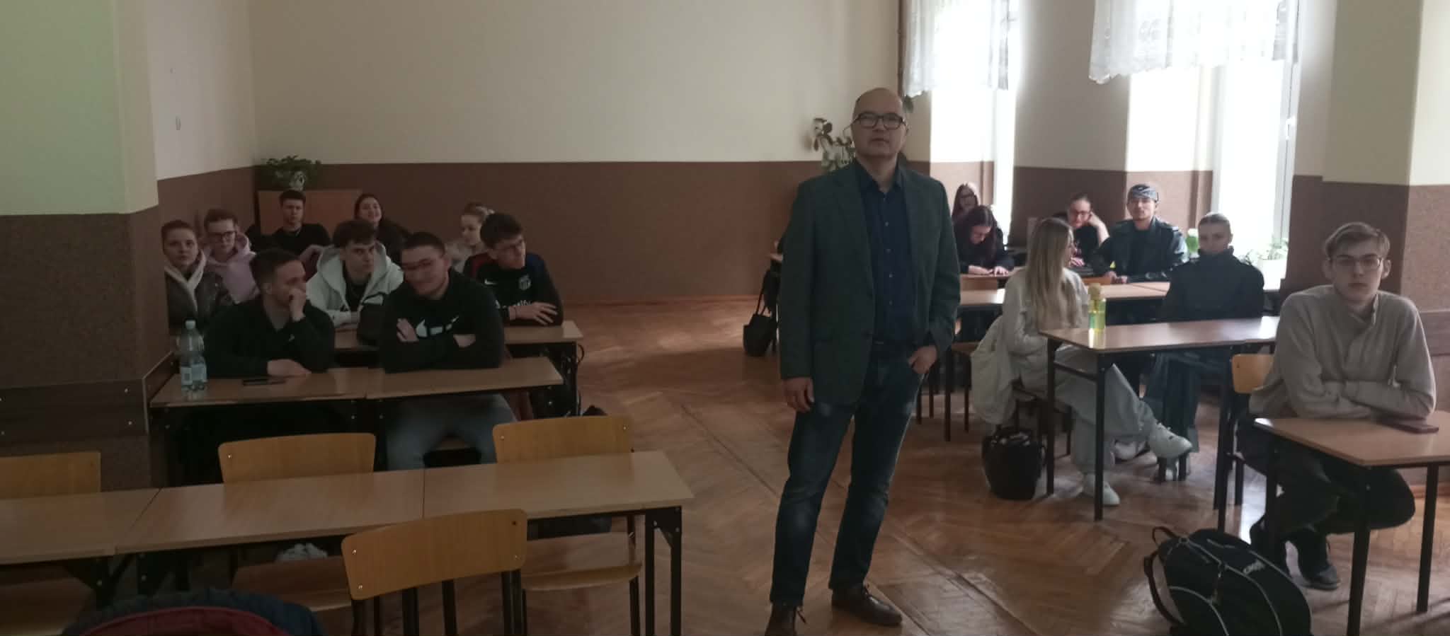 Pracownik Wydziału Nauk Społecznych dr Gaweł Strządała przeprowadził dwie godziny lekcyjne zajęć, podczas których zaprezentował wydziały i kierunki Państwowej Akademii Nauk Stosowanych w Nysie, ze szczególnym uwzględnieniem kierunku Bezpieczeństwo wewnętrzne w Nysie.