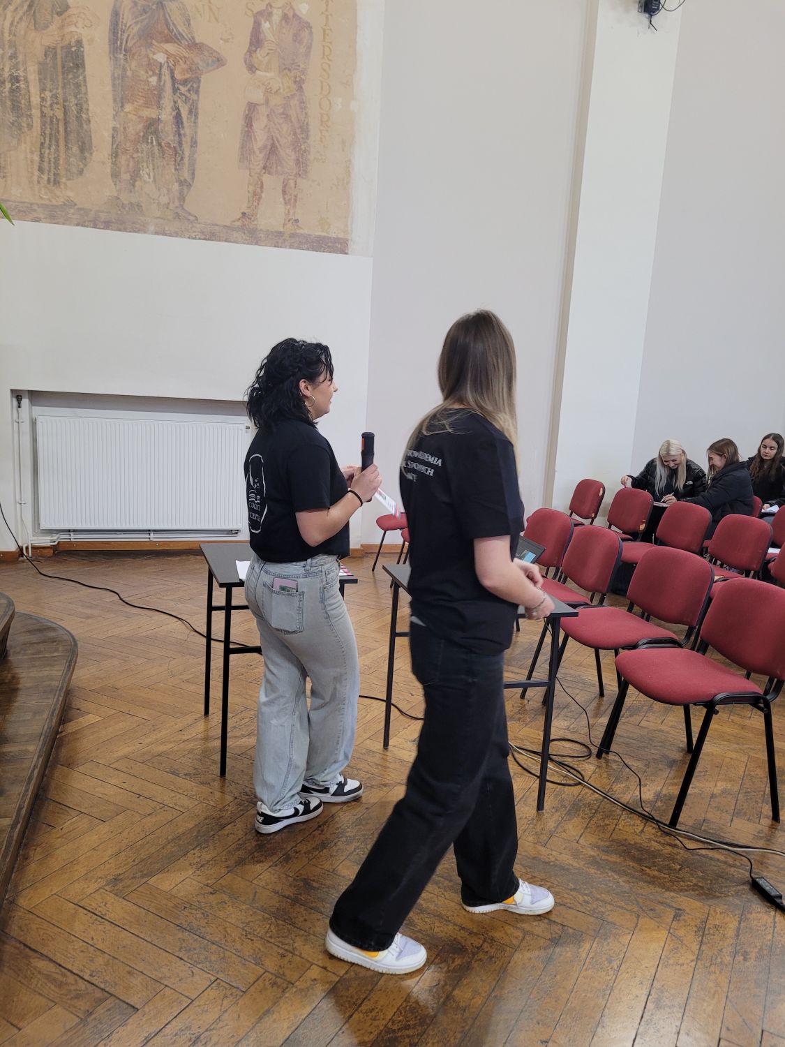 W dalszej części spotkania studentki – Sara Lach i Marcelina Laskowska – podzieliły się swoimi doświadczeniami ze studiów licencjackich na kierunku bezpieczeństwo wewnętrzne. Przybliżyły maturzystom przebieg studiów oraz możliwości rozwoju, jakie oferuje Państwowa Akademia Nauk Stosowanych w Nysie.