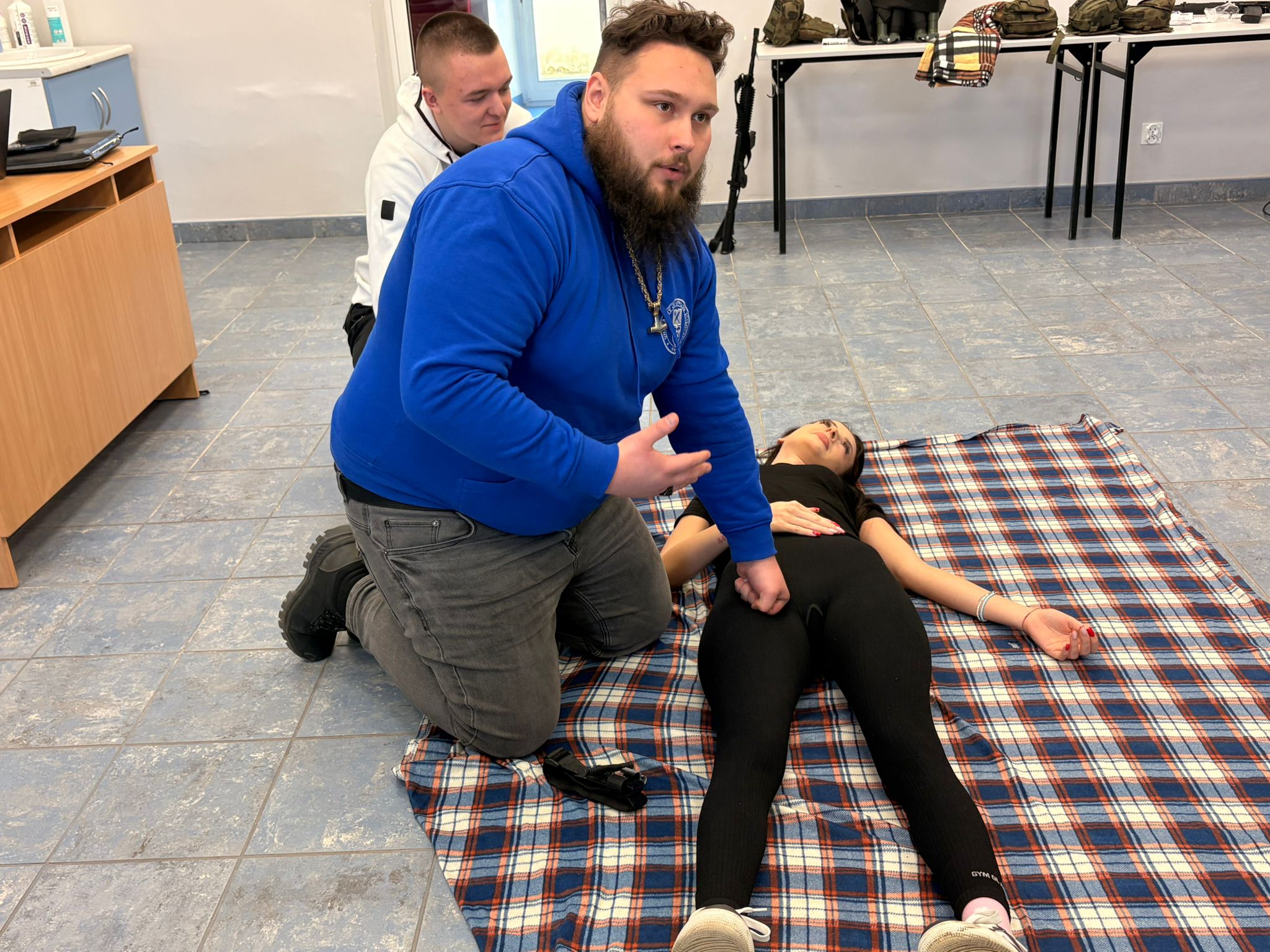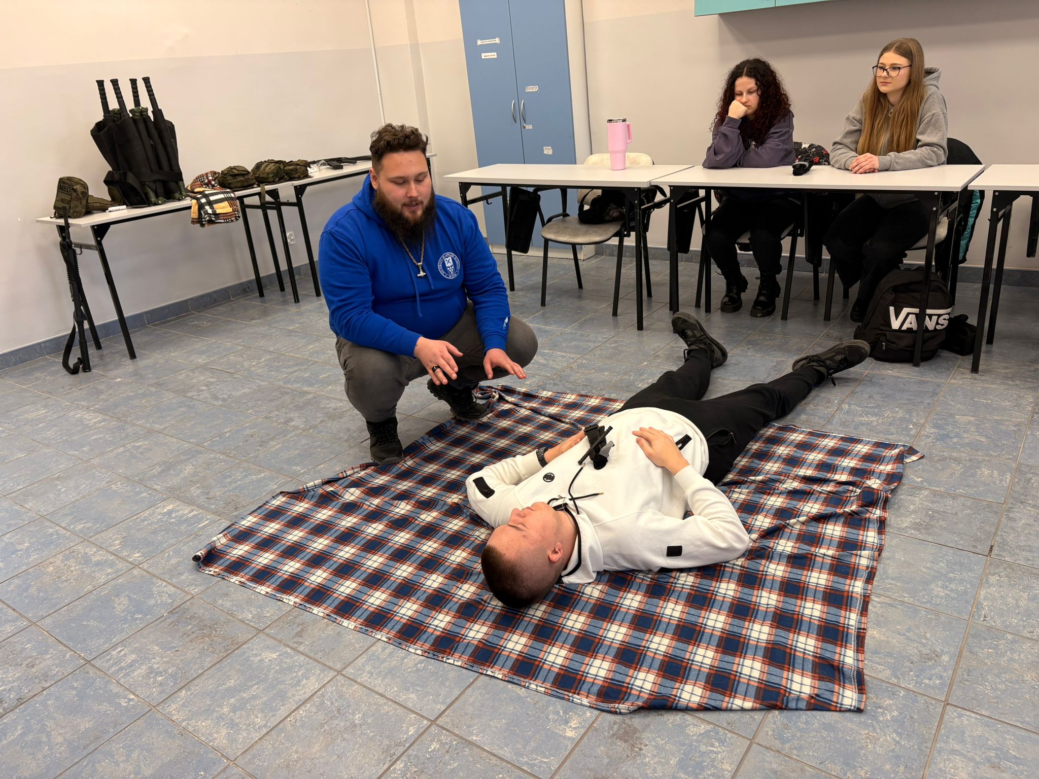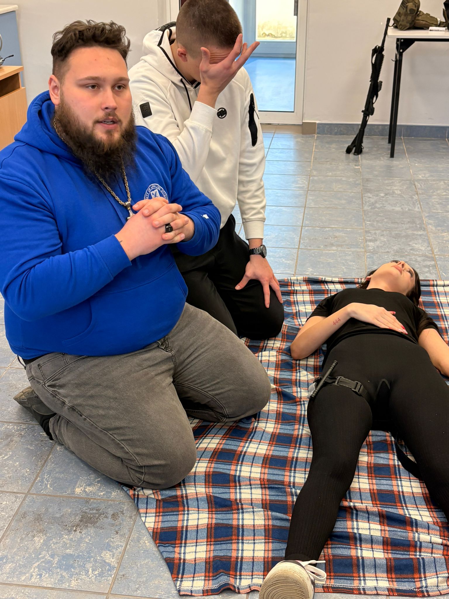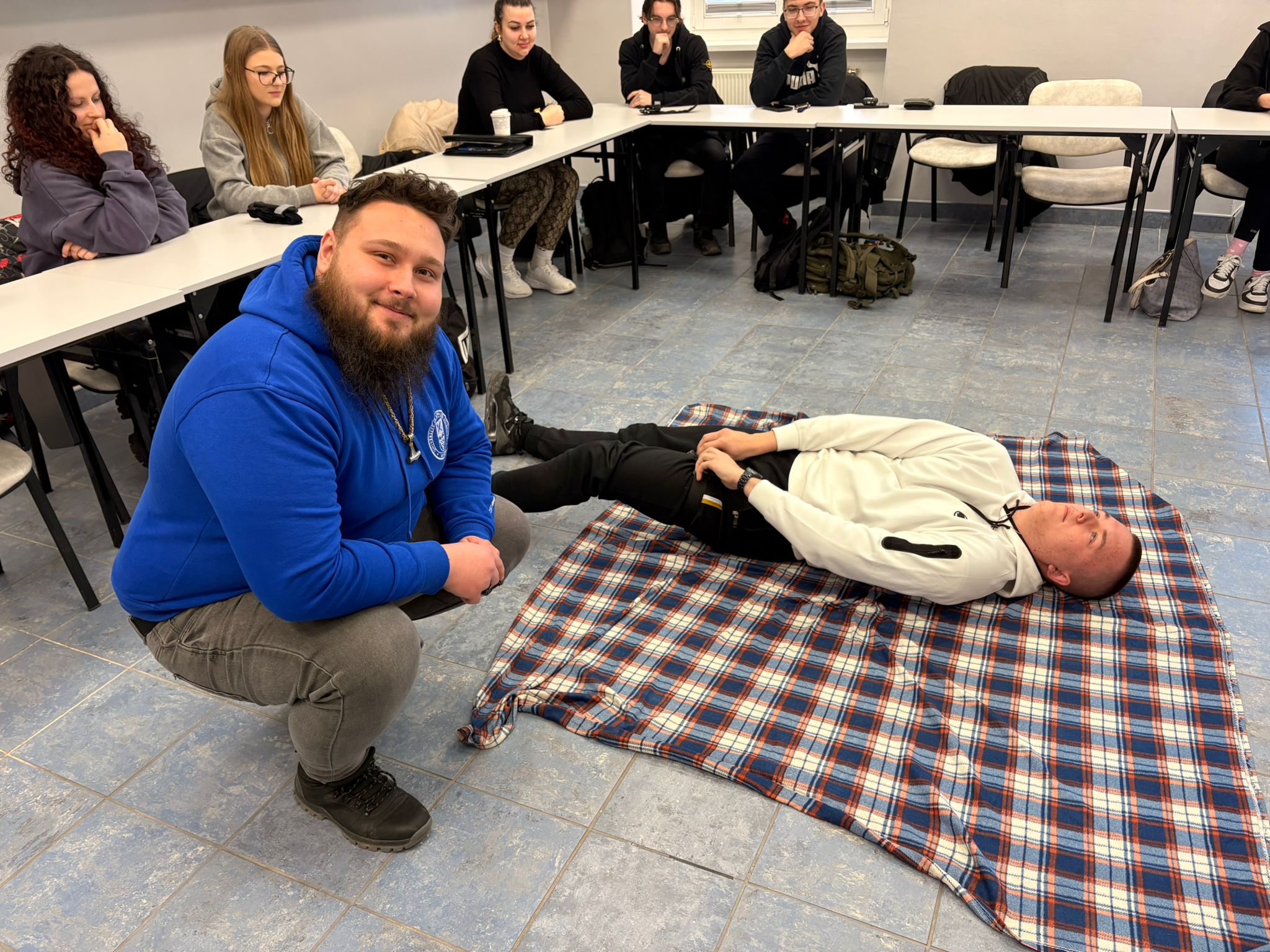 Zajęcia z ratownictwa medycznego prowadzone przez mgr Aleksego Gałana – ratownika medycznego, obejmowały praktyczne ćwiczenia z tamowania masywnych krwotoków przy użyciu opaski uciskowej. Studenci Bezpieczeństwa Wewnętrznego poznali zasady prawidłowego zastosowania stazy taktycznej, jej umiejscowienia oraz oceny skuteczności.