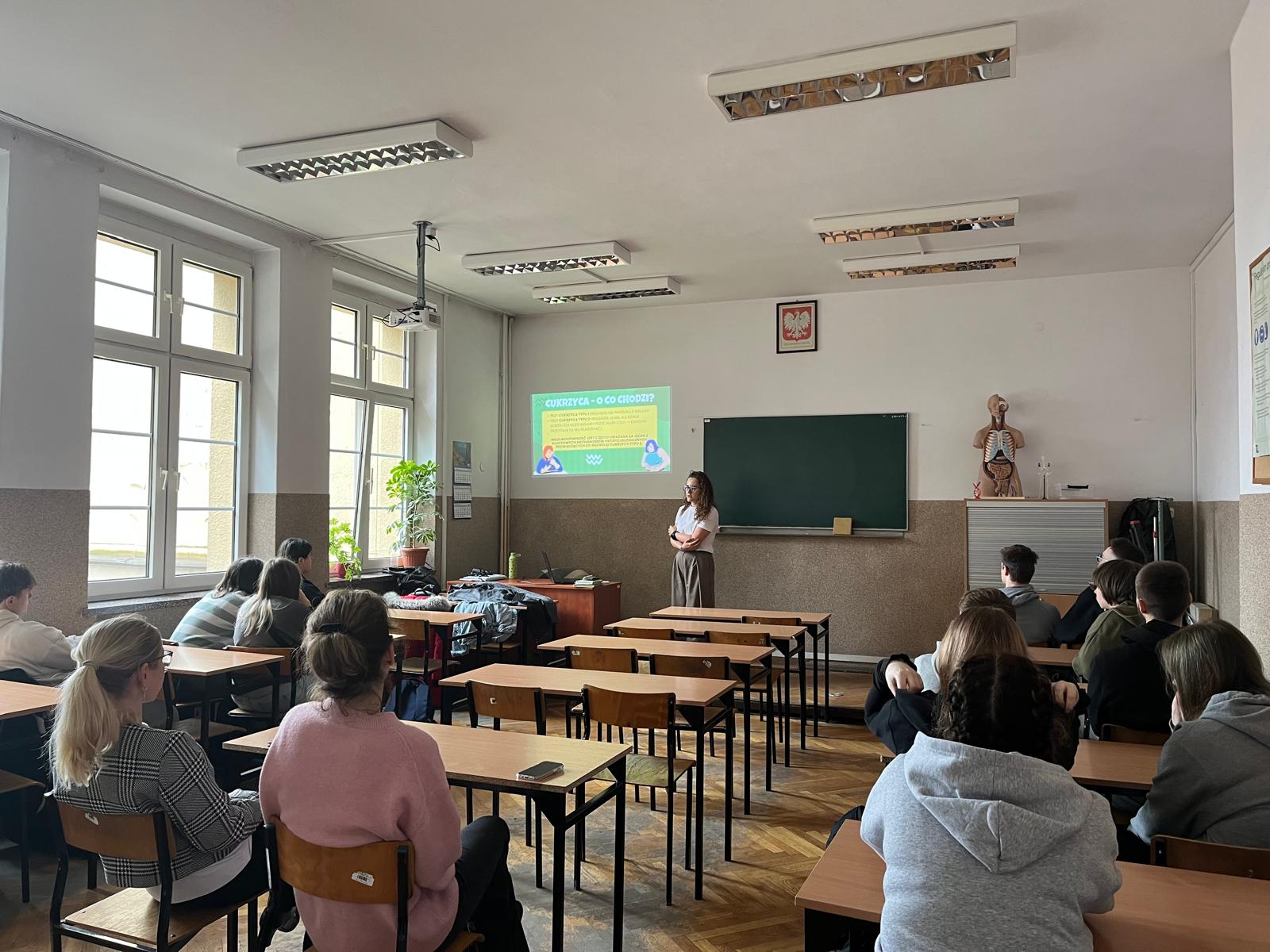 Studentki Koła Naukowego EDUKATORZY ŻYWIENIA Lucyna Kwiczala oraz Sandra Kamińska, miały przyjemność poprowadzić prelekcję dla uczniów w CZKiU w Nysie 😊 Spotkanie dotyczyło niezwykle ważnych zagadnień, takich jak energia z pożywienia, insulinooporność oraz cukrzyca. Cieszy nas ogromnie, że młodzi ludzie tak aktywnie uczestniczyli w zajęciach – nie brakowało pytań, zaangażowania i ciekawych dyskusji! Podsumowaniem naszej prelekcji było wspólne komponowanie zdrowego talerza 🥗, które pozwoliło uczniom w praktyczny sposób wykorzystać zdobytą wiedzę.