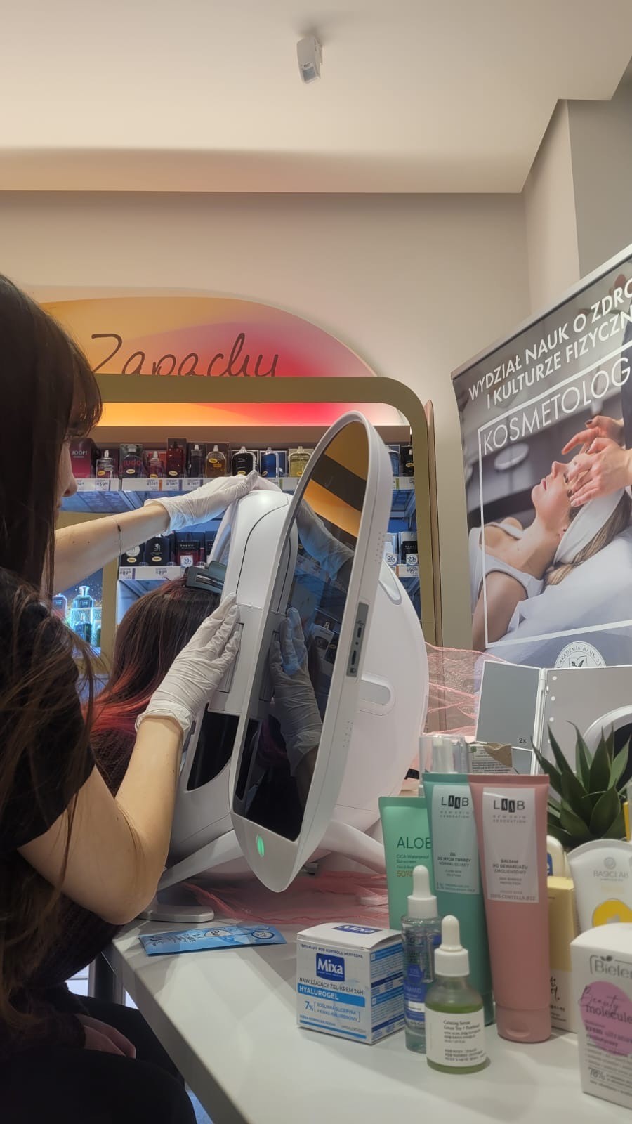 Podczas spotkania udzielały profesjonalnych porad dotyczących prawidłowej pielęgnacji skóry, pomagając dobrać odpowiednie kosmetyki do indywidualnych potrzeb. Każda z Pań mogła również skorzystać z analizy skóry wykonanej przy użyciu nowoczesnego, multispektralnego analizatora, co pozwoliło jeszcze lepiej poznać potrzeby swojej cery 🌿🔬