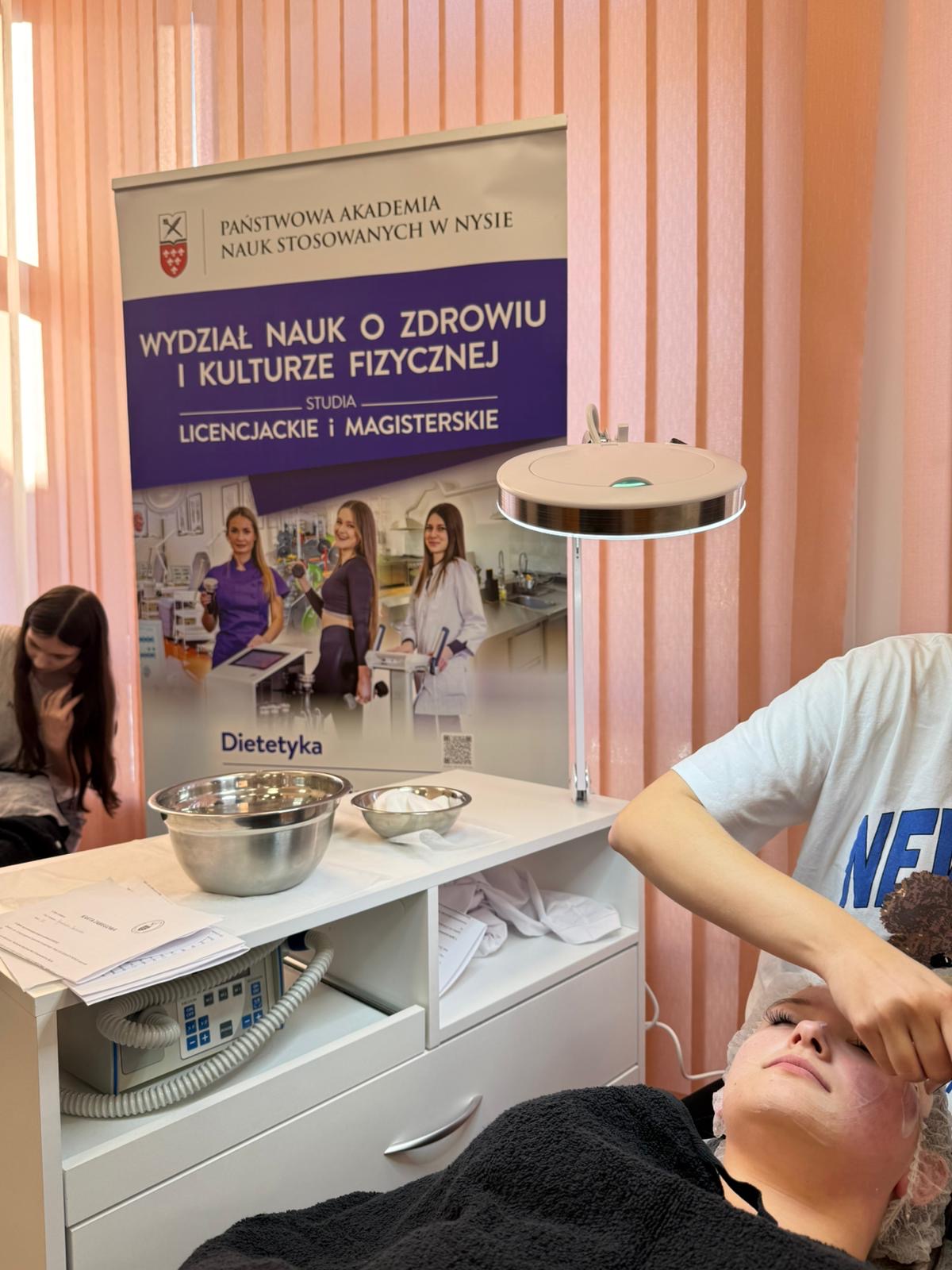 W dniu 19.11.2025 , na kierunku Kosmetologia w Państwowej Akademii Nauk Stosowanych w Nysie odbyły się wyjątkowe warsztaty pt. „Podstawy prawidłowej pielęgnacji skóry”. Wykład poprowadziła mgr Agnieszka Stasieńko-Tluczek, dzieląc się specjalistyczną wiedzą i praktycznymi wskazówkami dotyczącymi świadomej pielęgnacji skóry. Natomiast część praktyczna odbyła się pod czujnym okiem i z pomocą studentek 3. roku Kosmetologii, które świetnie wspierały uczestników w wykonywaniu zadań i prezentacji technik pielęgnacyjnych.