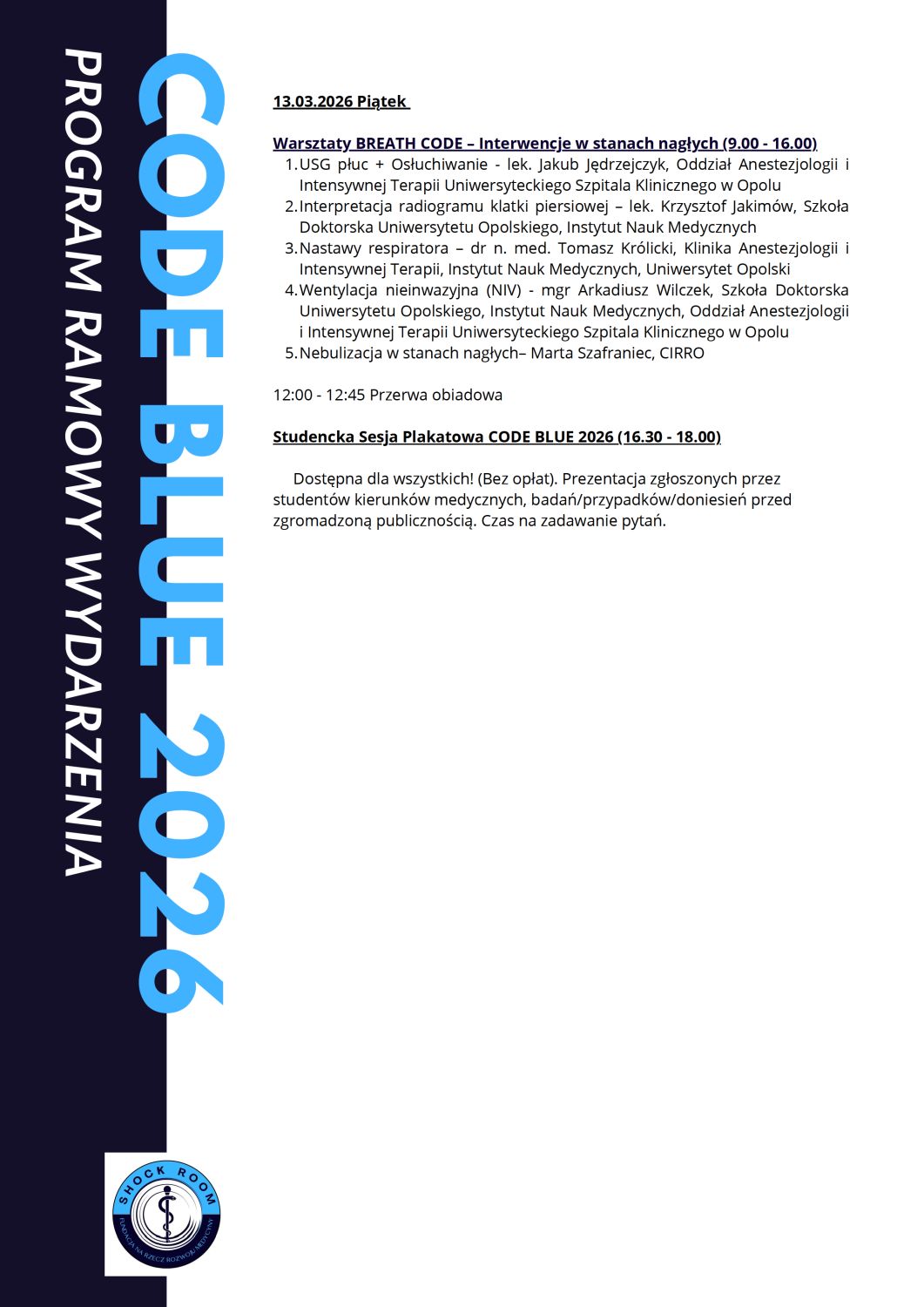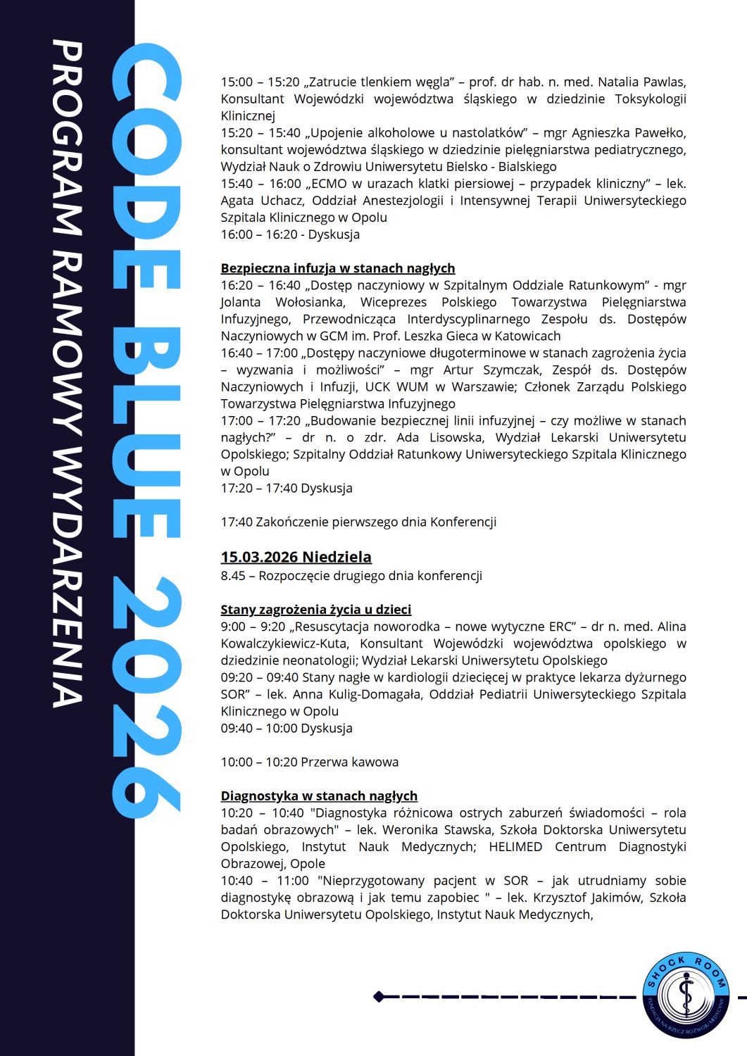 Studentki kierunku Pielęgniarstwo PANS w Nysie: Marta Doskocz oraz Magdalena Ciesielska wzięły udział w konferencji CODE BLUE 2026 w Opolu, organizowanej przez Fundację SHOCK ROOM – Medical Conference. Wydarzenie skierowane było do lekarzy, pielęgniarek, położnych, ratowników medycznych oraz studentów kierunków medycznych.