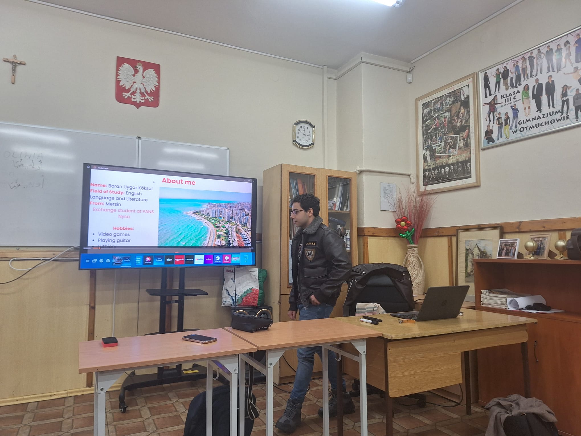 16 marca 2026 r. przedstawiciele Państwowej Akademii Nauk Stosowanych w Nysie odwiedzili Zespół Szkół w Otmuchowie, gdzie odbyło się spotkanie z młodzieżą mające na celu poznanie kultury krajów, z których pochodzą studenci Programu Erasmus+ studiujący w semestrze letnim na Wydziale Neofilologii oraz informujące o nowej ofercie dydaktycznej - kierunku Lingwistyka Stosowana w zakresie języka angielskiego i niemieckiego.