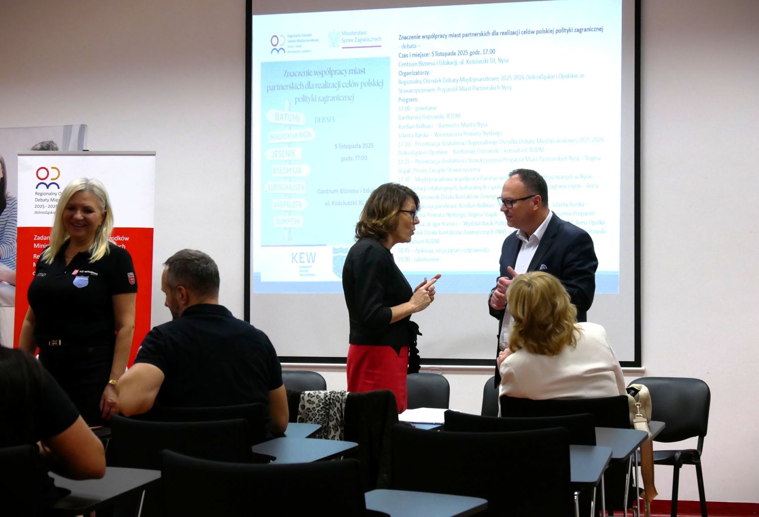 5 listopada 2025 roku w Centrum Biznesu i Edukacji w Nysie odbyła się debata zorganizowana przez Regionalny Ośrodek Debaty Międzynarodowej RODM pt. „Znaczenie współpracy miast partnerskich dla realizacji celów polskiej polityki zagranicznej”.