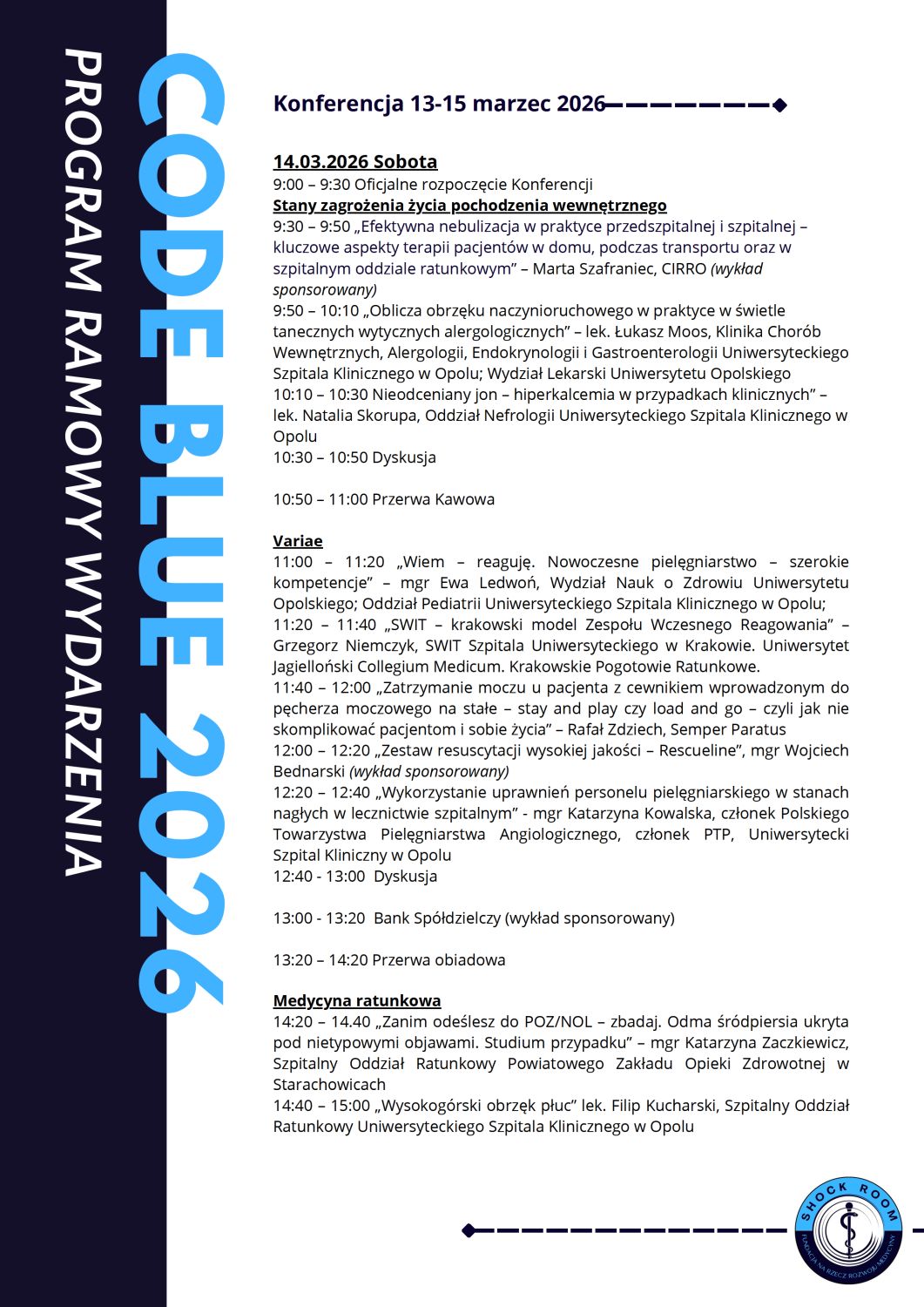 Studentki kierunku Pielęgniarstwo PANS w Nysie: Marta Doskocz oraz Magdalena Ciesielska wzięły udział w konferencji CODE BLUE 2026 w Opolu, organizowanej przez Fundację SHOCK ROOM – Medical Conference. Wydarzenie skierowane było do lekarzy, pielęgniarek, położnych, ratowników medycznych oraz studentów kierunków medycznych.