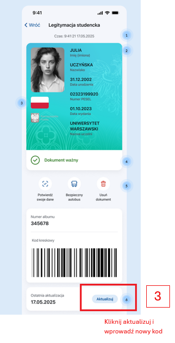 3. Zaktualizuj ważność skanując nowy kod QR w aplikacji mObywatel.