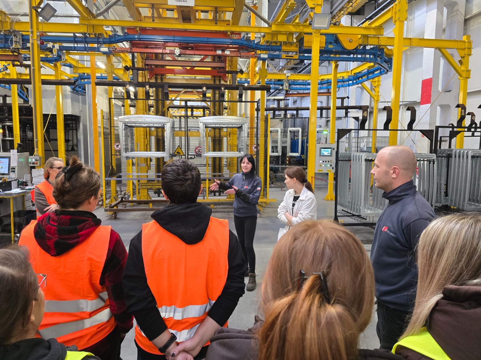Głównym celem zajęć było zapoznanie studentów z rzeczywistym procesem produkcyjnym komponentów metalowych dedykowanych dla branży motoryzacyjnej. W trakcie wizyty uczestnicy mieli okazję poznać zasady pracy pras tłoczących, funkcjonowanie stanowisk zrobotyzowanego spawania i zgrzewania oraz szczegółowy przebieg procesu malowania kataforetycznego (KTL). Program wizyty obejmował również zapoznanie się z metodami obróbki powierzchniowej oraz systemami pełnej kontroli jakości gotowych wyrobów.
