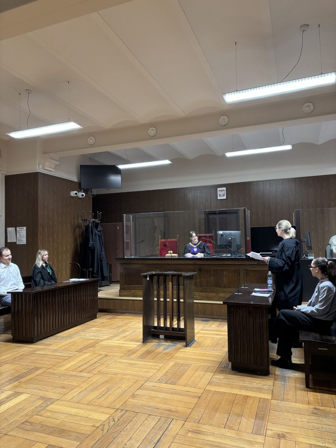 Symulacja rozprawy przebiegła sprawnie i zakończyła się pełnym powodzeniem, stanowiąc cenne doświadczenie edukacyjne oraz praktyczne uzupełnienie wiedzy teoretycznej zdobywanej podczas zajęć. Wizyta w sądzie była dla studentów wartościową okazją do bezpośredniego zetknięcia się z realiami pracy wymiaru sprawiedliwości.