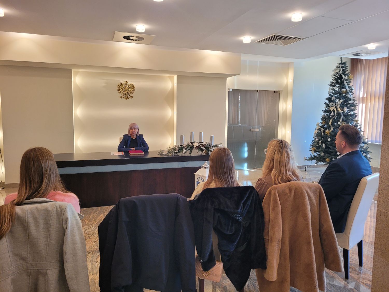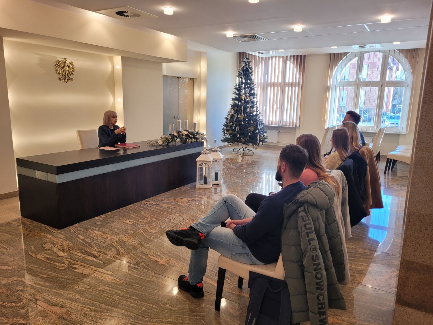 W środę 10 grudnia 2025 r. studenci II roku administracji studiów II stopnia w ramach zajęć z panem magistrem Kamilem Nahlerem z przedmiotu Prawo o aktach stanu cywilnego, odwiedzili Urząd Miejski w Nysie, w którym znajduje się Urząd Stanu Cywilnego. Pani Joanna Dygas-Wandzel, Kierownik USC, przedstawiła praktyczne aspekty funkcjonowania tej instytucji oraz ustawowe zadania realizowane przez kierownika i pozostałych pracowników.