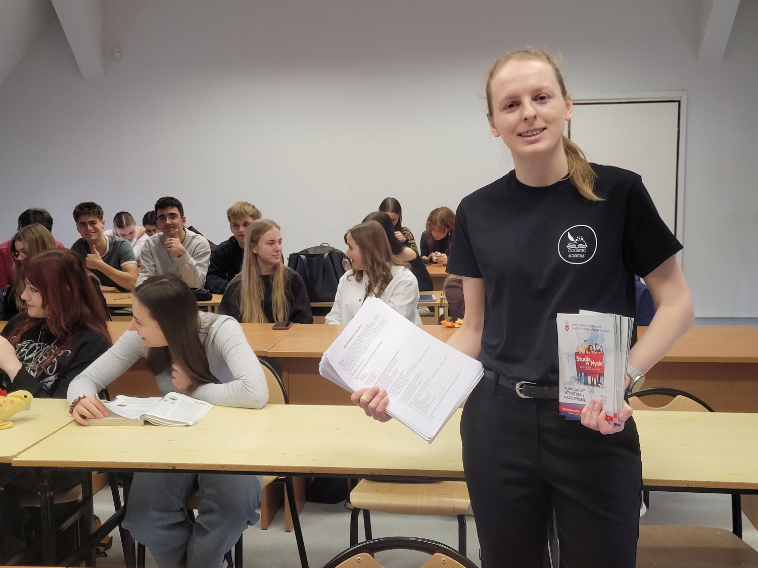 W dniu 25 marca 2026 r. mgr Daria Hnytko, w roli członkini SKN „Cognitio Scientiae”, odwiedziła Liceum Ogólnokształcące im. Władysława Jagiełły w Ząbkowicach Śląskich, realizując działania o charakterze badawczym oraz promocyjnym na rzecz Wydziału Nauk Społecznych Państwowej Akademii Nauk Stosowanych w Nysie.