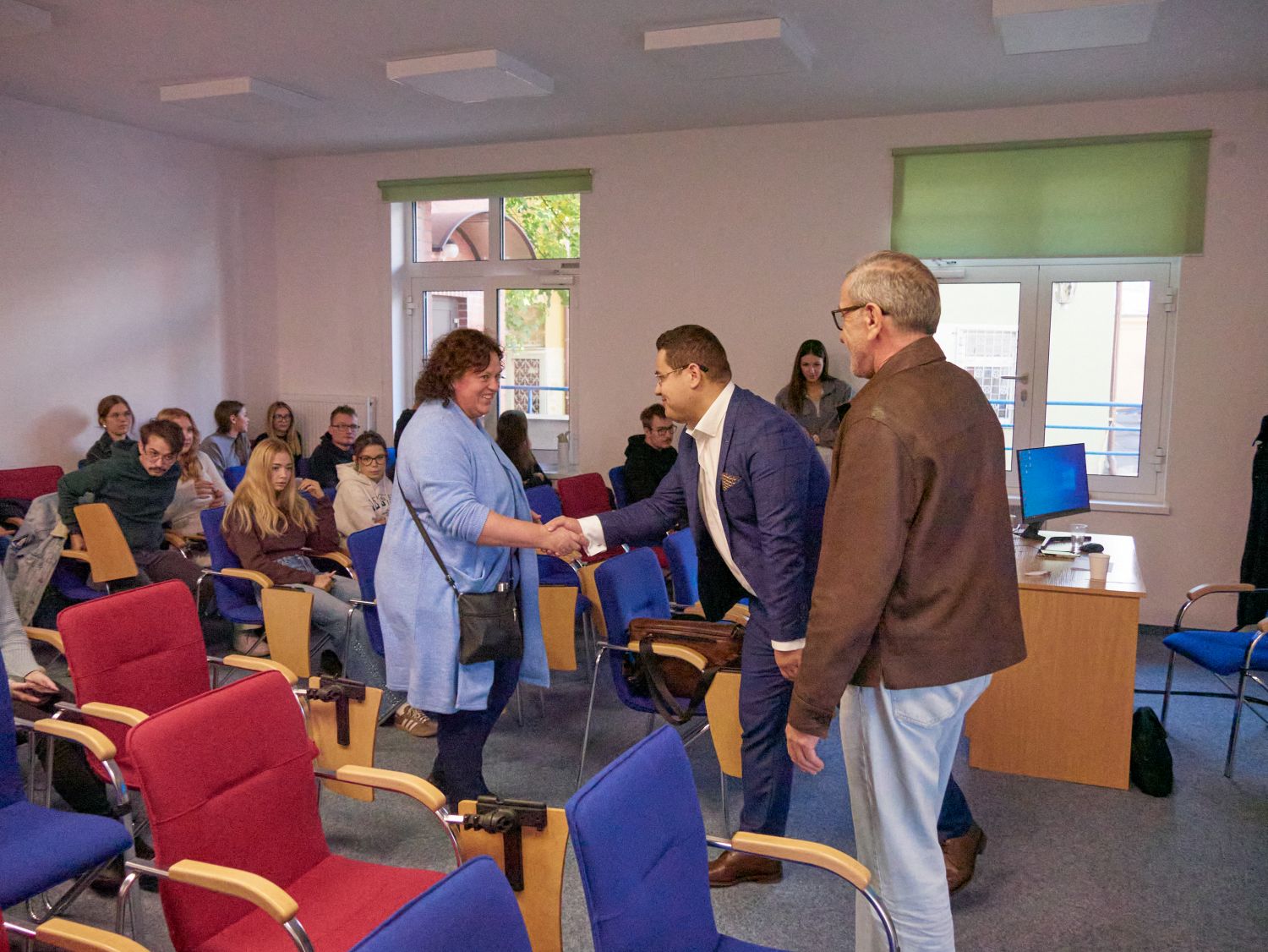 W spotkaniu udział wzięli studenci II i III roku Finansów i Rachunkowości WNE oraz studenci II roku Administracji WNS naszej Uczelni. W trakcie prelekcji zadawano wiele pytań związanych również z możliwością praktyk i staży dla studentów i absolwentów w Banku Spółdzielczym w Otmuchowie i w Nysie, na które pozytywnie odpowiedział Prezes Banku. W spotkaniu uczestniczyła także pani Dziekan Wydziału Nauk Ekonomicznych dr inż. Danuta Seretna-Sałamaj, prof. ucz.