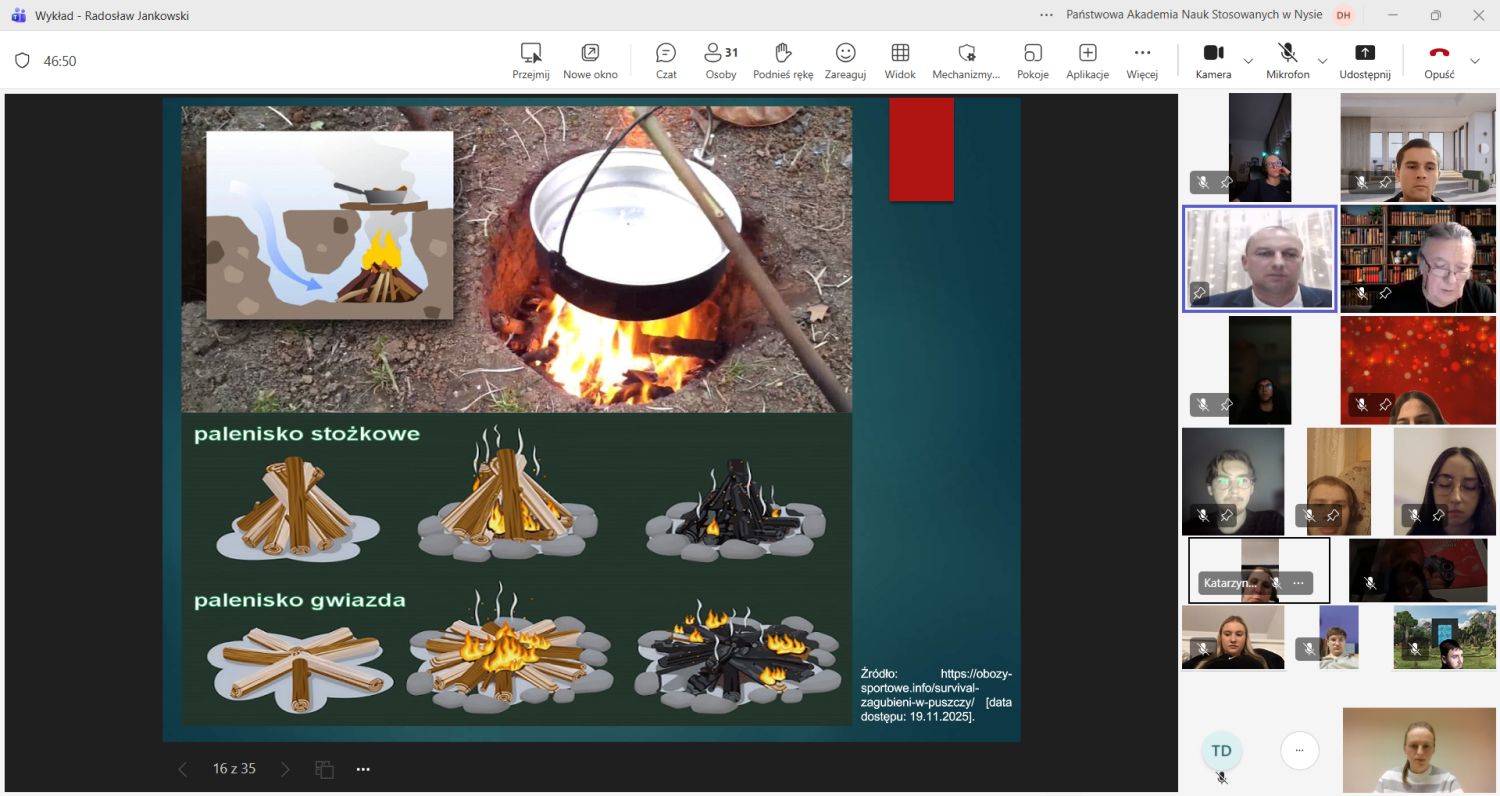 W dniu 18 grudnia 2025 r. członkowie SKN „Cognitio Scientiae” wraz z Opiekunem Koła uczestniczyli w wykładzie pt. „Przetrwanie w sytuacjach kryzysowych i klęskach żywiołowych”. Prelekcję przygotował Radosław Jankowski, pod nadzorem merytorycznym nauczyciela akademickiego mgr Darii Hnytko z Wydziału Nauk Społecznych (WNS) PANS w Nysie. Należy podkreślić, iż prelegent Radosław Jankowski jest jednocześnie członkiem SKN „Cognitio Scientiae”, studentem I roku Bezpieczeństwa wewnętrznego studiów I stopnia na WNS PANS w Nysie oraz doświadczonym żołnierzem 10 Opolskiej Brygady Logistycznej. Ponadto, na prelekcji obecni byli Dziekan WNS dr hab. Tomasz Drewniak, prof. ucz. oraz Prodziekan WNS dr Adam Banaszkiewicz.