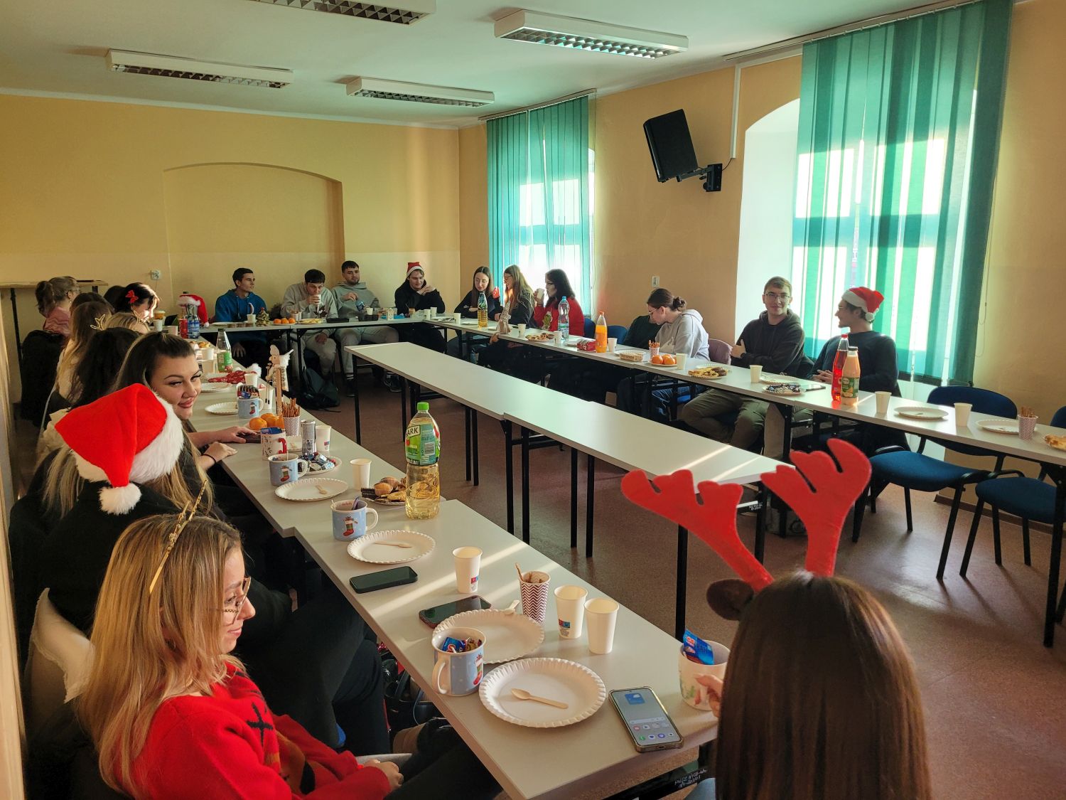 W dniu 16 grudnia 2025 r. odbyło się spotkanie wigilijno-integracyjne, na którym licznie zgromadzili się członkowie SKN „Cognitio Scientiae”, a także obecny byli Opiekun Koła dr hab. inż. Marek Z. Kulisz, prof. ucz. oraz Zarząd Koła. Wydarzenie stanowiło kolejną okazję do integracji oraz nawiązania rozmów pomiędzy studentami różnych roczników z kierunków bezpieczeństwo wewnętrzne i administracja. Podczas spotkania mgr Daria Hnytko, Julia Psiurska i lic. Tomasz Rabenda wręczyli prezenty studentom oraz Opiekunowi Koła, wprowadzając namiastkę dziecięcej, szczerej radości świątecznej. Serdeczna, przedświąteczna atmosfera niewątpliwie sprzyjała chwili odpoczynku od codziennych zajęć i obowiązków życia prywatnego, a także wzmocniła motywację do podejmowania kolejnych inicjatyw z ramienia SKN „Cognitio Scientiae” na gruncie badawczo-popularyzatorskim.