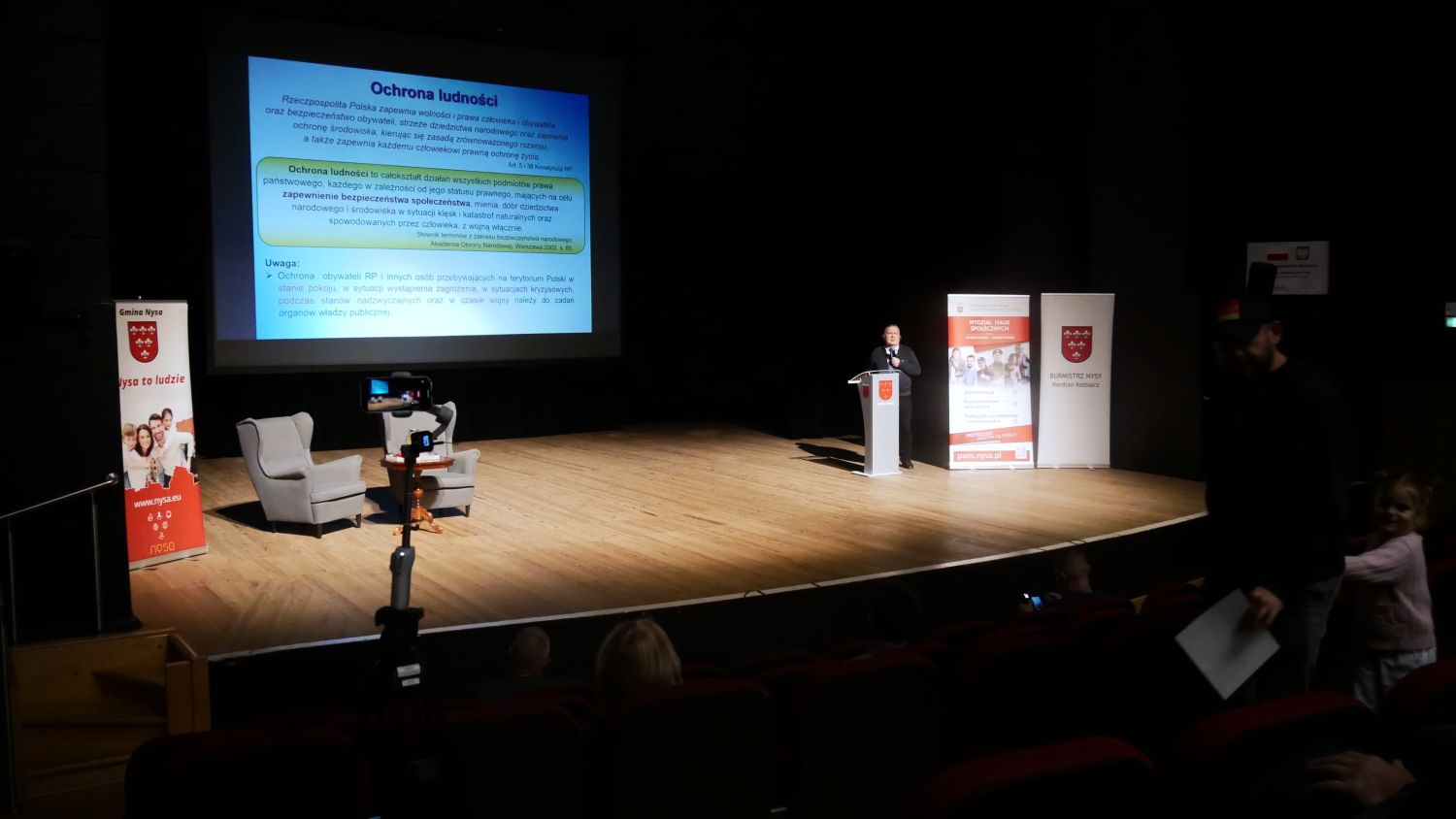 27 października w Nyskim Domu Kultury odbyło się pierwsze z cyklu eksperckich szkoleń z ochrony ludności i obrony cywilnej, zorganizowane przez Gminę Nysa we współpracy z Państwową Akademią Nauk Stosowanych w Nysie – kierunki Bezpieczeństwo wewnętrzne oraz Ratownictwo medyczne. W wydarzeniu uczestniczyli mieszkańcy regionu, studenci oraz wykładowcy PANS, którzy poprowadzili część praktyczną, obejmującą m.in. udzielanie pierwszej pomocy, obsługę defibrylatora AED, wykorzystanie gaśnic oraz przygotowanie plecaków ewakuacyjnych.