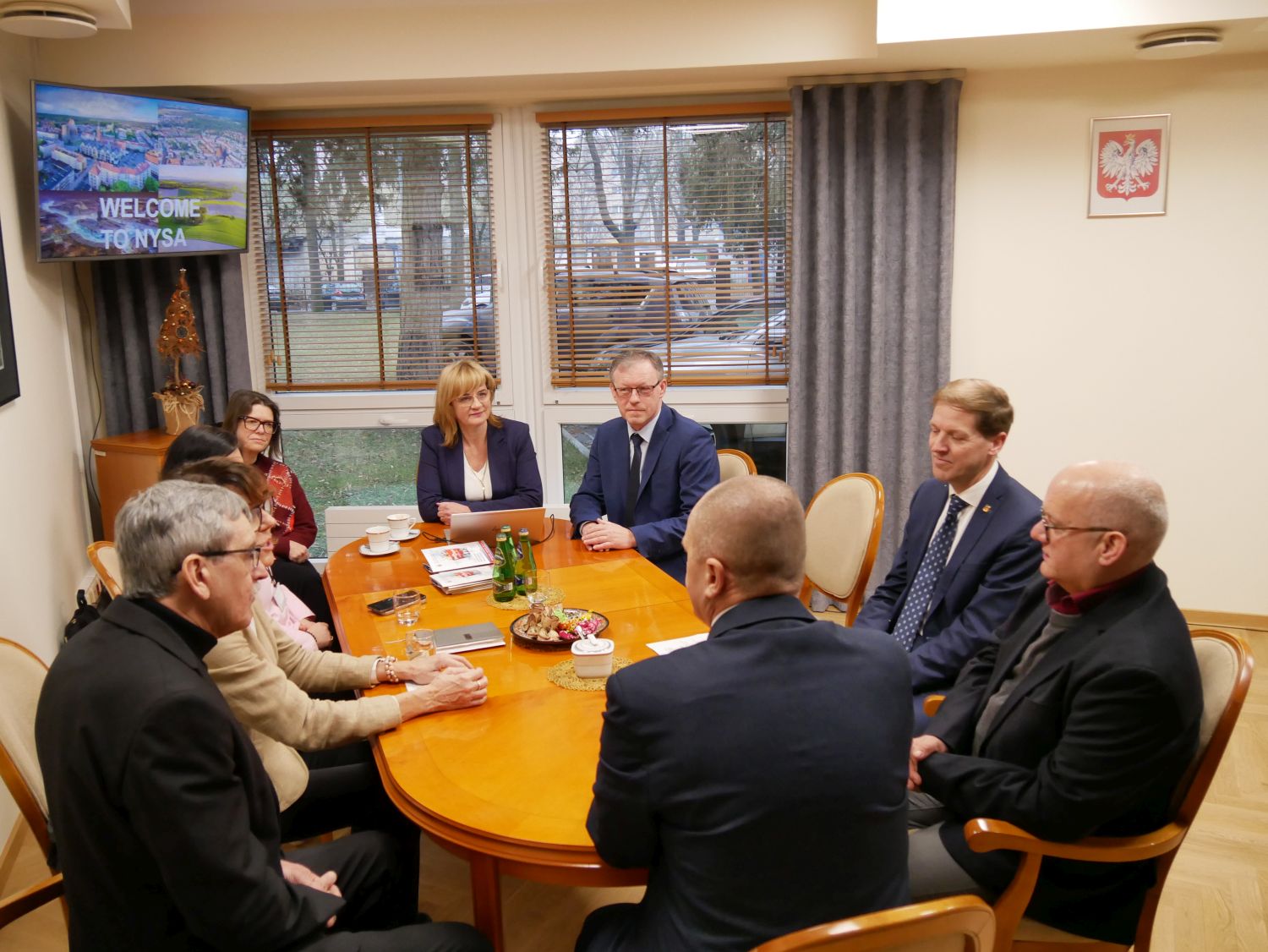 28 stycznia 2026 r. Państwowa Akademia Nauk Stosowanych w Nysie gościła delegację z niemieckiego Powiatu Coesfeld, w skład której weszli Starosta Powiatu Coesfeld dr Christian Schulze Pellengahr oraz Przewodniczący Niemiecko-Polskiego Towarzystwa (Deutsch-Polnische Gesellschaft – DPG) Dirk Lagers. Delegacja przebywała w Nysie na zaproszenie Starosty Nyskiego i miała na celu zacieśnienie współpracy samorządowej oraz wymianę doświadczeń w kluczowych obszarach funkcjonowania administracji, edukacji i kultury.
