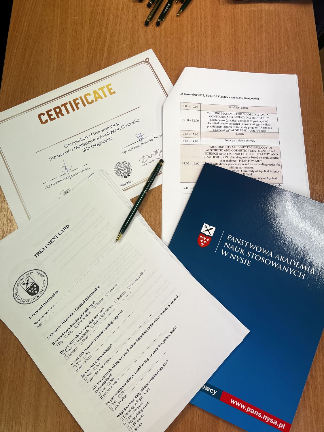 W dniach 24–28 listopada 2025 r. studentki kierunku Kosmetologia PANS w Nysie wraz z wykładowczyniami mgr Mirosławą Grabas-Wyrwich oraz mgr Agnieszką Stasieńko-Tłuczek uczestniczyły w międzynarodowym Blended Intensive Programme (BIP) pt. „A Complex of Aesthetic Cosmetology Procedures to Improve Skin Regeneration Processes”. Program został zorganizowany przez DU Agency "DU Daugavpils medicinas koledza", (Łotwa).
