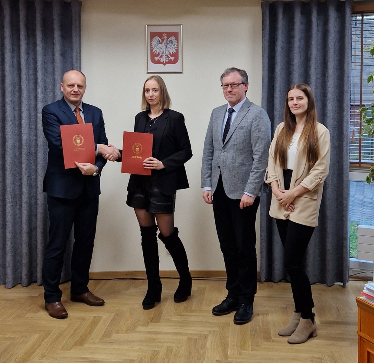 5 grudnia 2025 roku w Biurze Rektora Państwowej Akademii Nauk Stosowanych w Nysie odbyło się spotkanie związane z oficjalnym przekazaniem umowy o współpracy zawartej między PANS w Nysie a firmą IONWAY Poland Sp. z o.o. Dokument ten stanowi ważny krok w kierunku pogłębienia dotychczasowych relacji i wyznacza formalne ramy dalszych działań wspólnych w obszarze dydaktyki, badań naukowych oraz prac projektowych ukierunkowanych na rozwój nowoczesnych, zrównoważonych technologii.