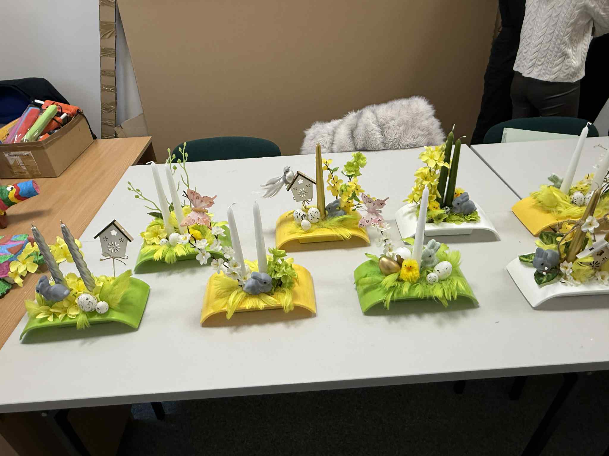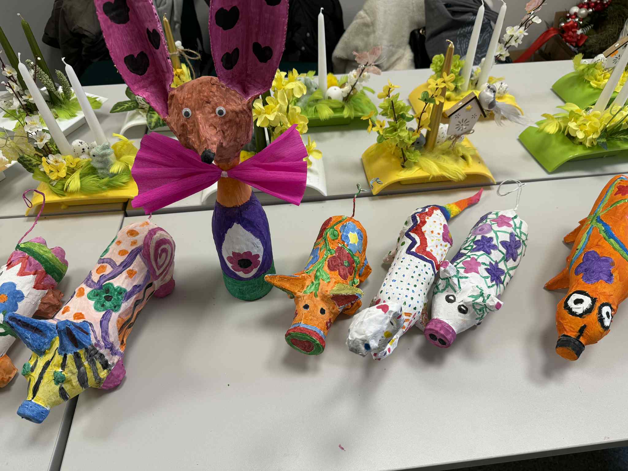 Tematyka wiosenna stały się pretekstem do ciekawych rozwiązań plastycznych. Dzięki zastosowaniu technik plastyczno-konstrukcyjnych studentki wykonały zróżnicowane formy przestrzenne. W duchu upcyklingu znaleziono nowe zastosowanie dla zużytych przedmiotów, wykorzystano m.in. wytłaczanki na jajka, stare gazety oraz butelki do wykonania wiosennych dekoracji i stroików wielkanocnych.