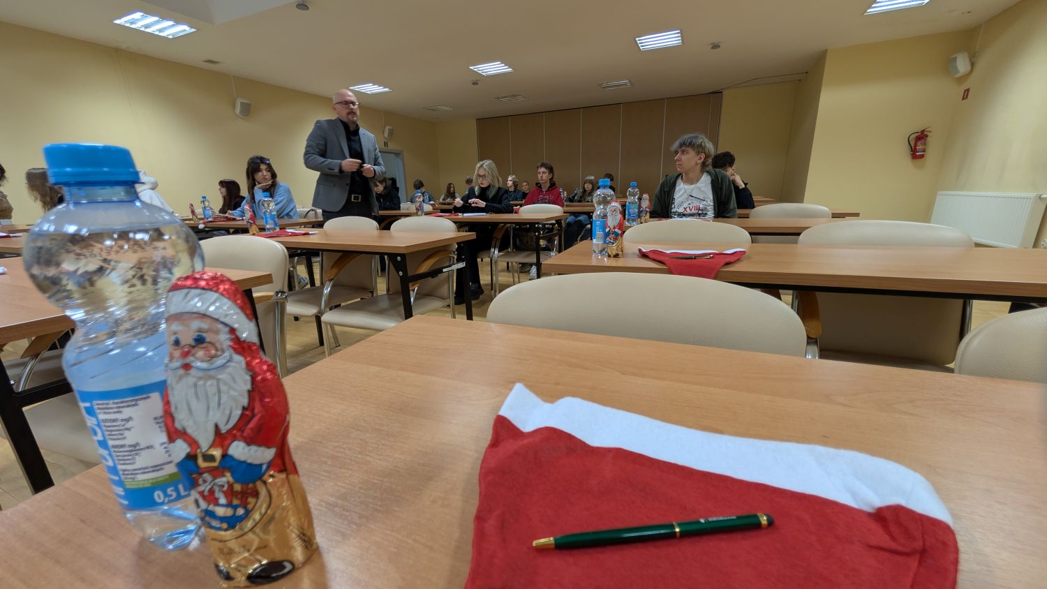W czasie, gdy komisja analizowała wyniki części pisemnej, uczestnicy oraz ich opiekunowie wysłuchali wykładu dr. hab. Mariusza Kamińskiego, prof. ucz., zatytułowanego „On the way to proficiency in English: How far can you go?”, poświęconego efektywnym sposobom rozwijania kompetencji językowych. Każdy z uczestników otrzymał paczkę mikołajkową, natomiast zwycięzcy – nagrody ufundowane przez PANS w Nysie, w tym karty podarunkowe Media Expert, słuchawki bezprzewodowe i uczelniane gadżety. Dziękujemy nauczycielom za przygotowanie młodzieży, wszystkim uczestnikom za zaangażowanie oraz wspólnie spędzony czas.