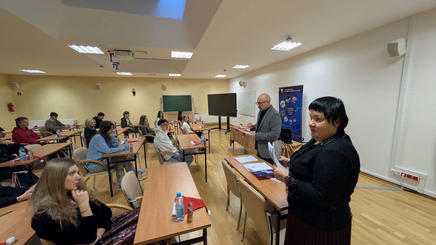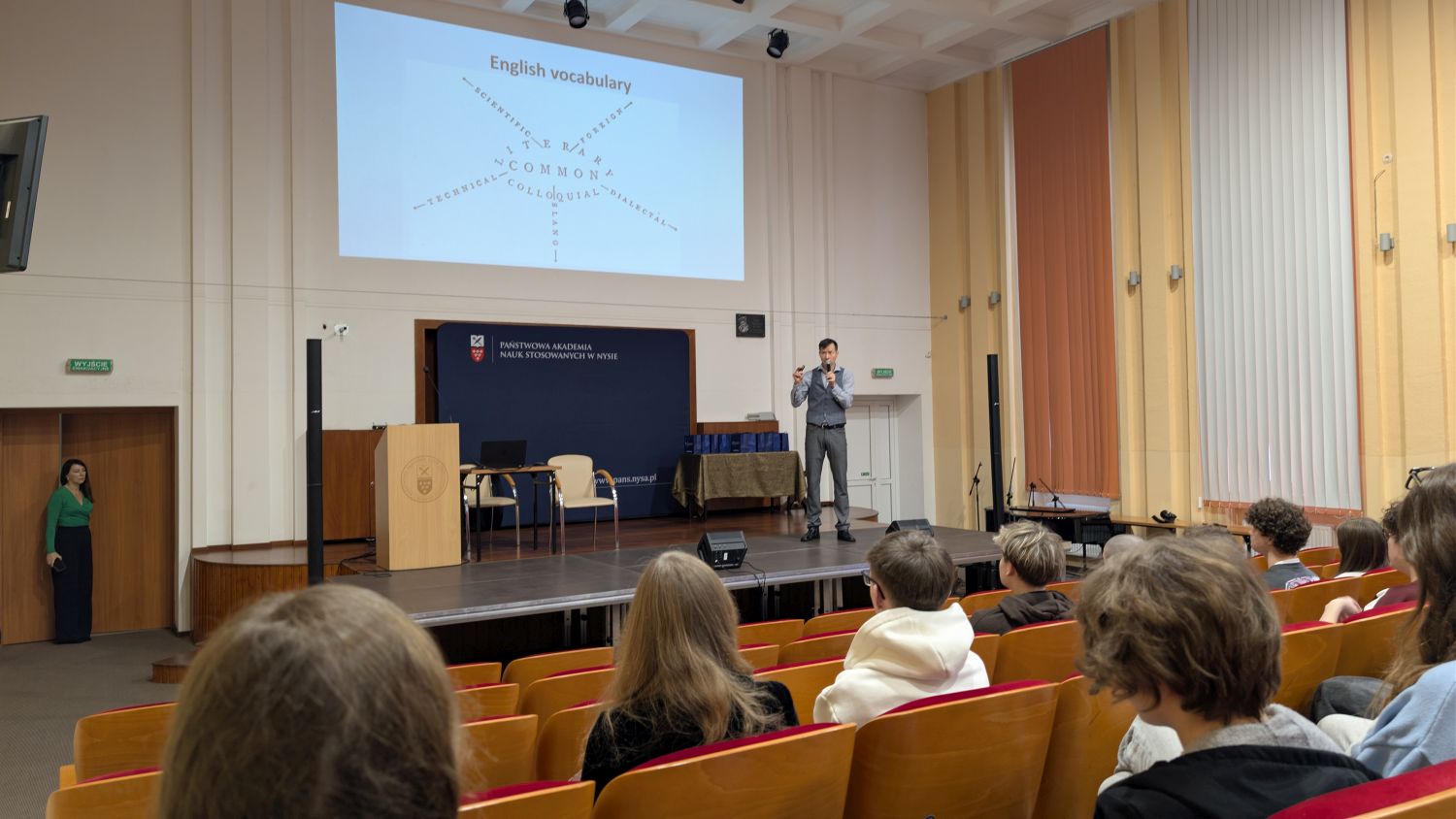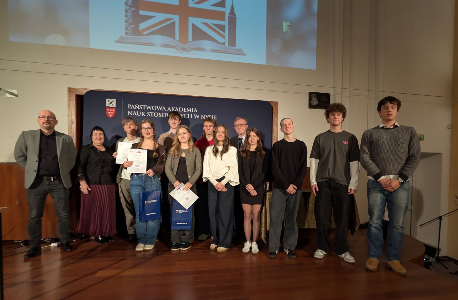 5 grudnia 2025 roku w Państwowej Akademii Nauk Stosowanych w Nysie odbyła się kolejna edycja Powiatowego Konkursu Języka Angielskiego, skierowana do uczniów szkół ponadpodstawowych z Powiatu Nyskiego. Wydarzenie zostało przygotowane przez Studium Języków Obcych we współpracy z Biurem Promocji PANS w Nysie i zgromadziło 28 uczestników reprezentujących pięć szkół średnich Powiatu Nyskiego. Konkurs podzielono na dwa etapy. Najpierw uczniowie przystąpili do testu pisemnego, który sprawdzał znajomość słownictwa, gramatyki, kultury krajów anglojęzycznych oraz umiejętność słuchania i czytania ze zrozumieniem. Na podstawie wyników do finału ustnego zakwalifikowano dziesięcioro najlepszych uczestników. Nad przebiegiem konkursu czuwała komisja w składzie: mgr Mariusz Kowalski, pełniący funkcję przewodniczącego, oraz mgr Beata Łucjanek ze Studium Języków Obcych. Jury oceniało zarówno prace pisemne, jak i ustne prezentacje finalistów.